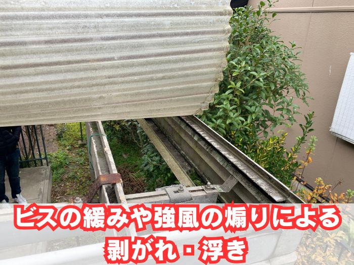 その屋根材である波板に以下のような症状が出ていたら、早めのメンテナンスが必要です。